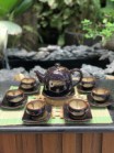 Ấm chén + 4 phụ kiện bao gồm: 1 ấm, 6 chén, 7 đĩa kê, 1 hộp chè, 1 gạc tàn, 1 lọ tăm, 1 chén tống