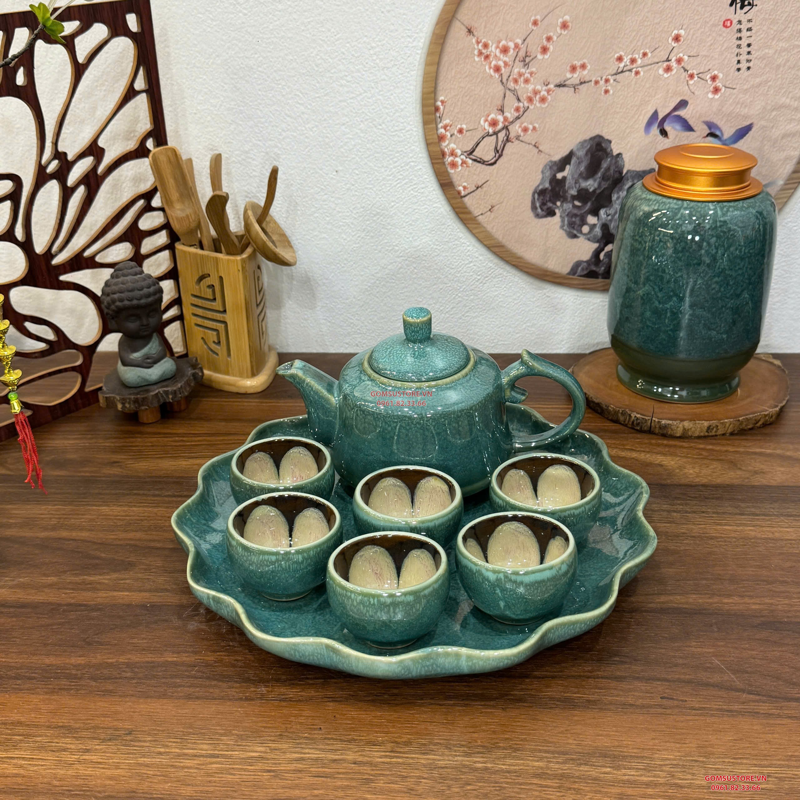 Ấm chén hỏa biến Bát Tràng là sản phẩm độc quyền chỉ có ở Bát Tràng. Với màu men tinh xảo của dòng men xanh ngọc hỏa biến bao phủ. Bộ ấm trà trở nên đẹp mắt và sang trọng thích hợp làm quà tặng hoặc trưng bày tại gia đình các cơ quan hay doanh nghiệp. Hãy cùng bài viết này điểm qua một vài đặc tính đặc điểm của bộ sản phẩm này nhé!