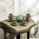 ● Sản phẩm: Bộ ấm chén men hoả biến xanh đá, gốm Bát Tràng cao cấp.