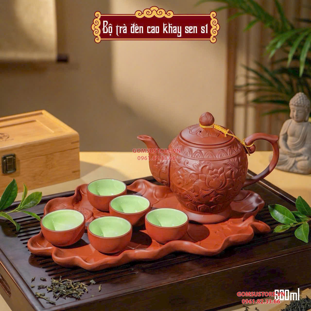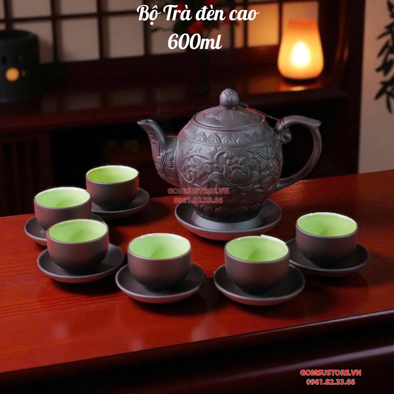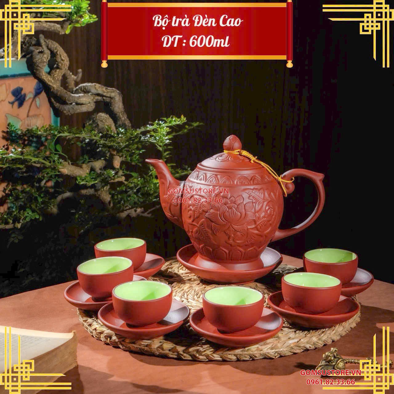 Bộ Ấm Chén Tử Sa Đèn Cao là lựa chọn hoàn hảo cho những ai yêu thích sự tinh tế và nghệ thuật trà đạo truyền thống. Được chế tác từ đất tử sa đặc trưng của Bát Tràng, sản phẩm mang vẻ đẹp mộc mạc nhưng đầy chiều sâu, kết hợp giữa sắc đỏ đen sang trọng và họa tiết chạm khắc tinh xảo, tạo nên một tổng thể hài hòa và đẳng cấp.