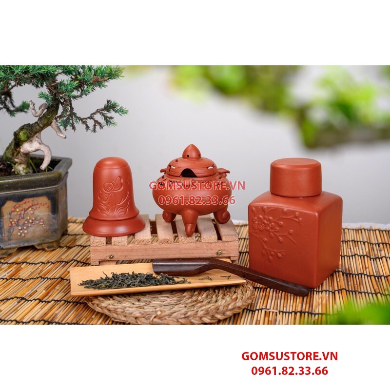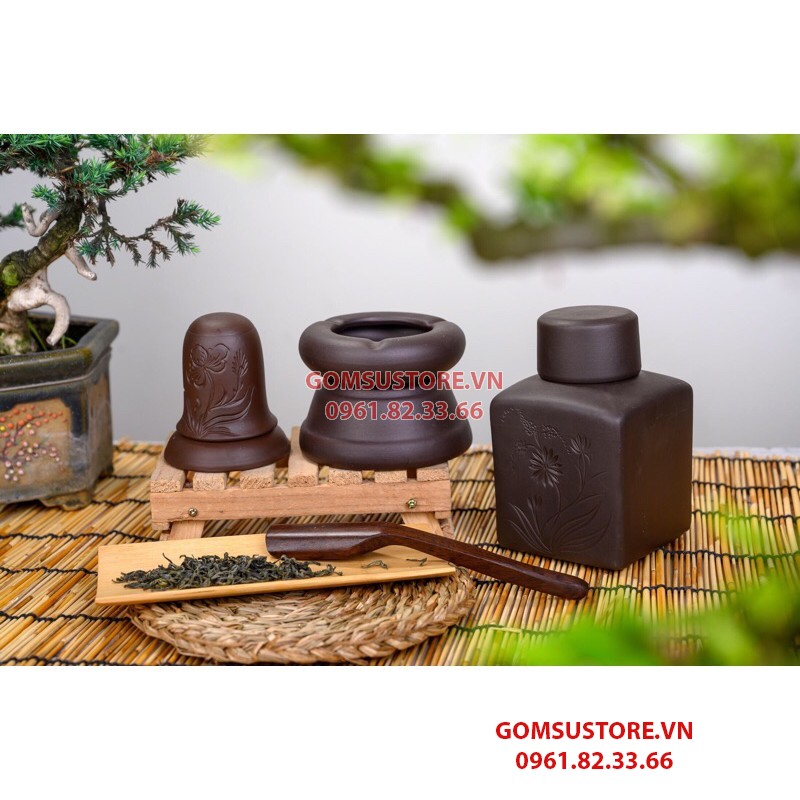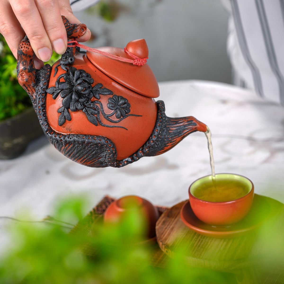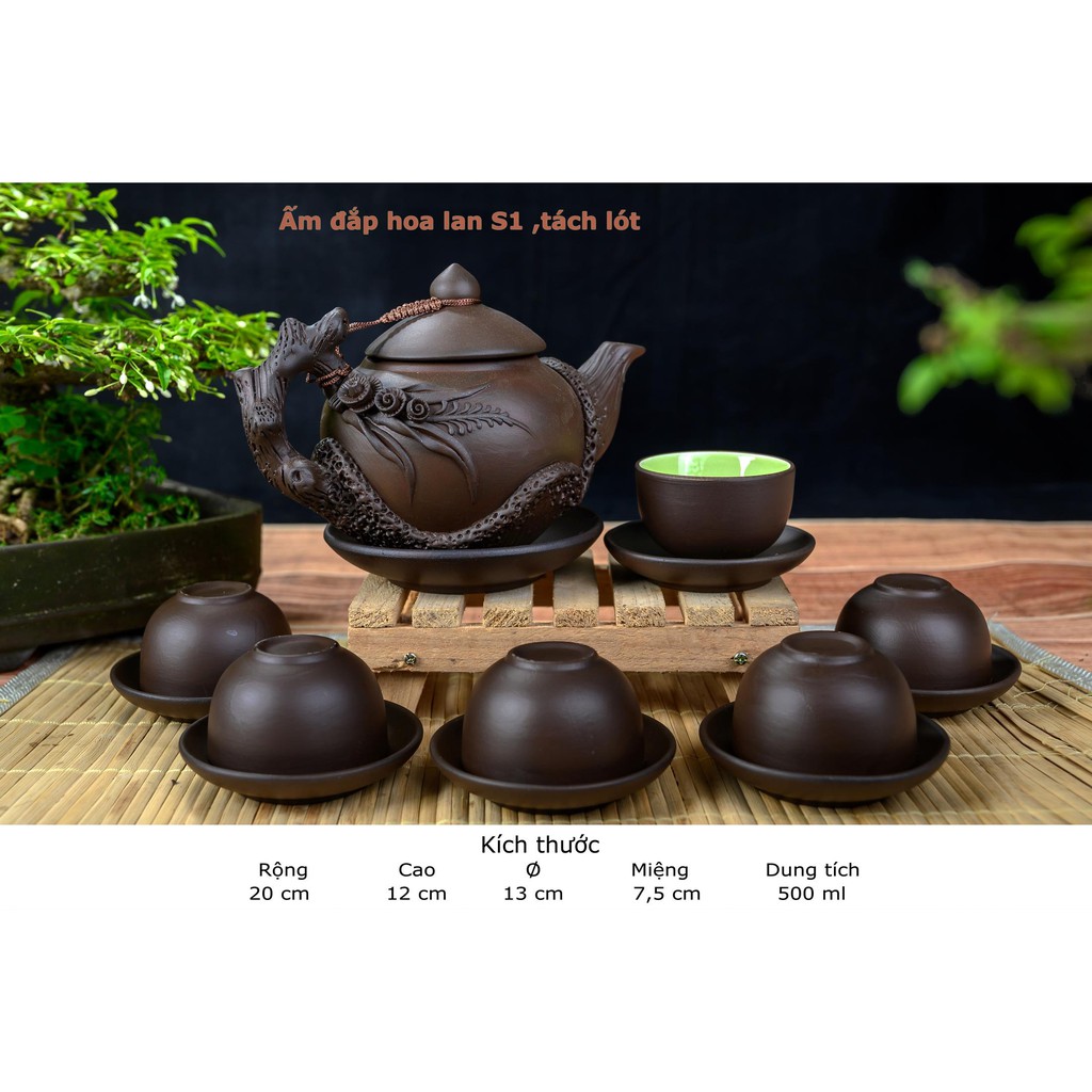 Ấm chén tử sa phù dung tách lót là lựa chọn hoàn hảo cho những ai yêu thích sự tinh tế và nghệ thuật trà đạo truyền thống. Được chế tác từ đất tử sa đặc trưng của Bát Tràng, sản phẩm mang vẻ đẹp mộc mạc nhưng đầy chiều sâu, kết hợp giữa sắc đỏ đen sang trọng và họa tiết chạm khắc tinh xảo, tạo nên một tổng thể hài hòa và đẳng cấp.