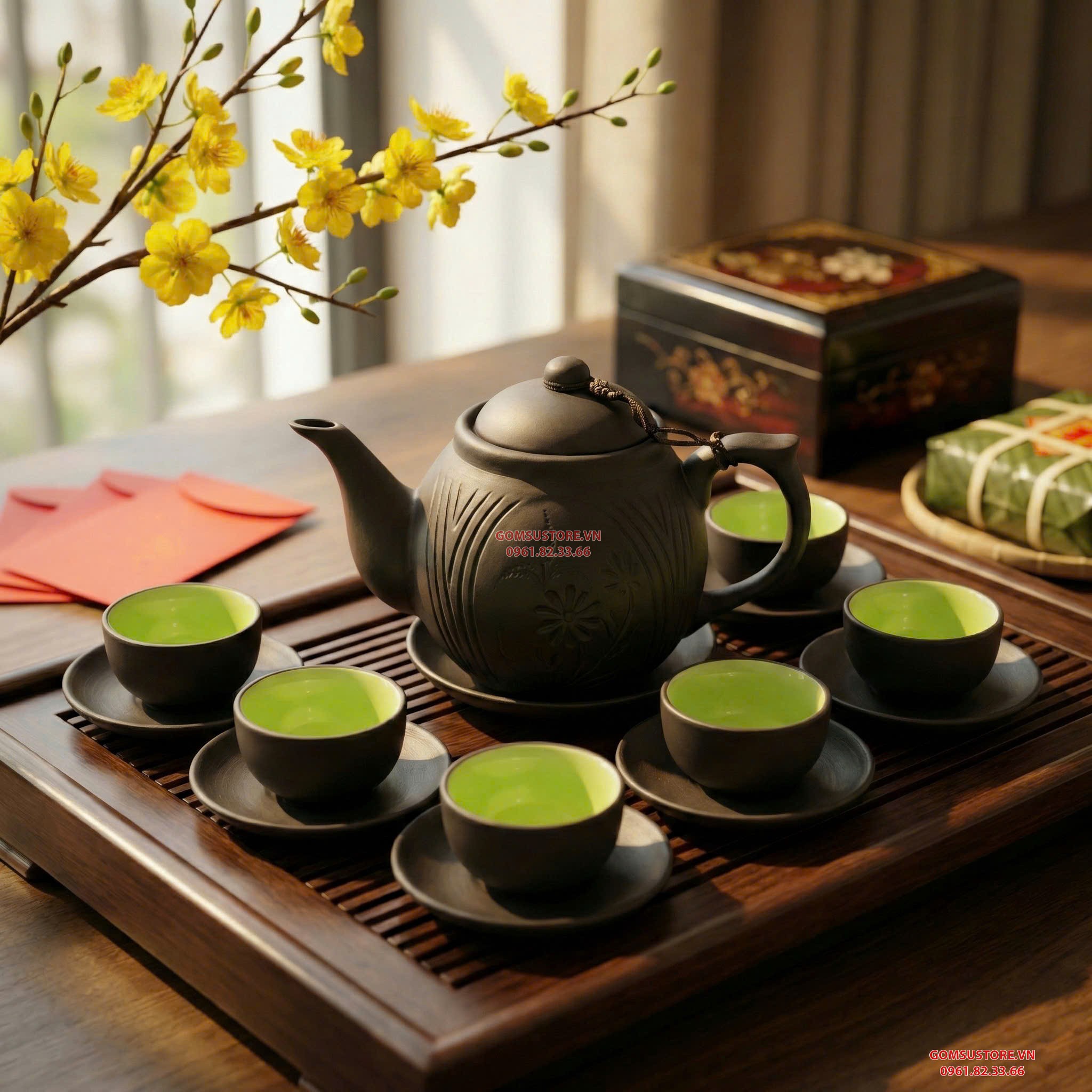 ✔️ Tùy bộ có thể kèm đĩa lót chén / khay trà tròn hoặc chữ nhật