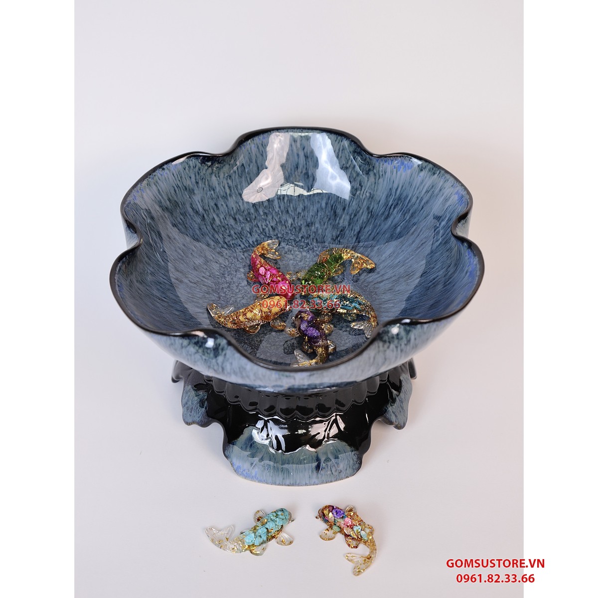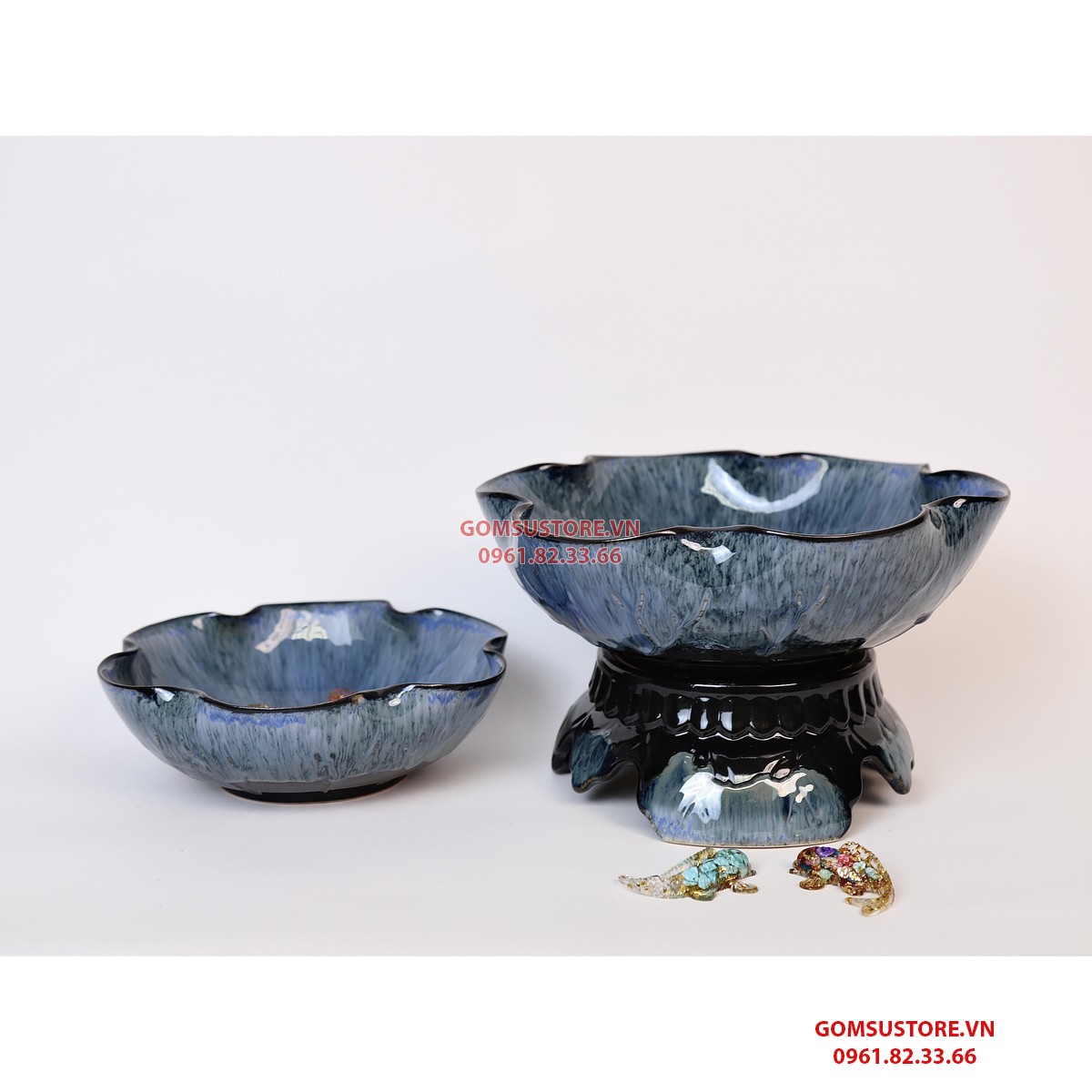 Bát Sen Thả Hoa Minh Đường Tụ Thuỷ Màu MEN HỎA BIẾN NHAM THẠCH Xanh Gốm Sứ Cao Cấp Bát Tràng