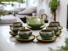 ● Sản phẩm: Bộ ấm chén men hoả biến xanh đá, gốm Bát Tràng cao cấp.
