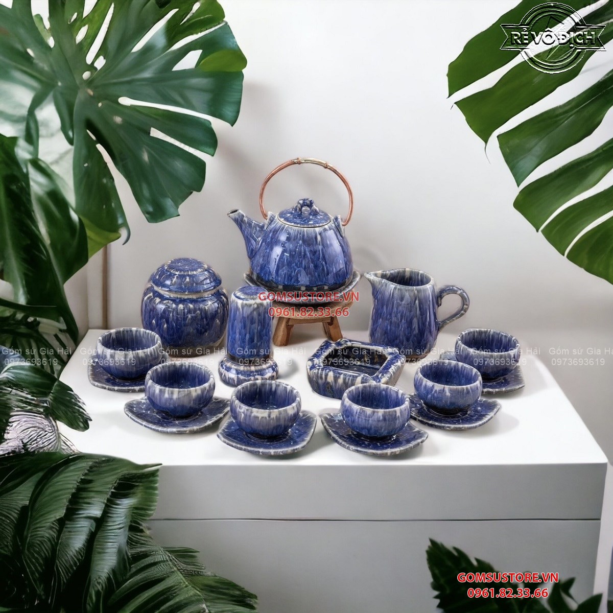 Sản phẩm : Bộ ấm chén men hoả biến vân đá saphia xanh Bát Tràng 💯💯💯