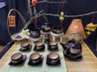 Ấm chén + 4 phụ kiện bao gồm:  1 ấm, 6 chén, 7 đĩa kê, 1 hộp chè, 1 gạc tàn, 1 lọ tăm, 1 chén tống