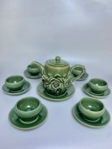 Bộ ấm chén gồm: 1 ấm trà, 6 chén nhỏ và 7 đĩa kê