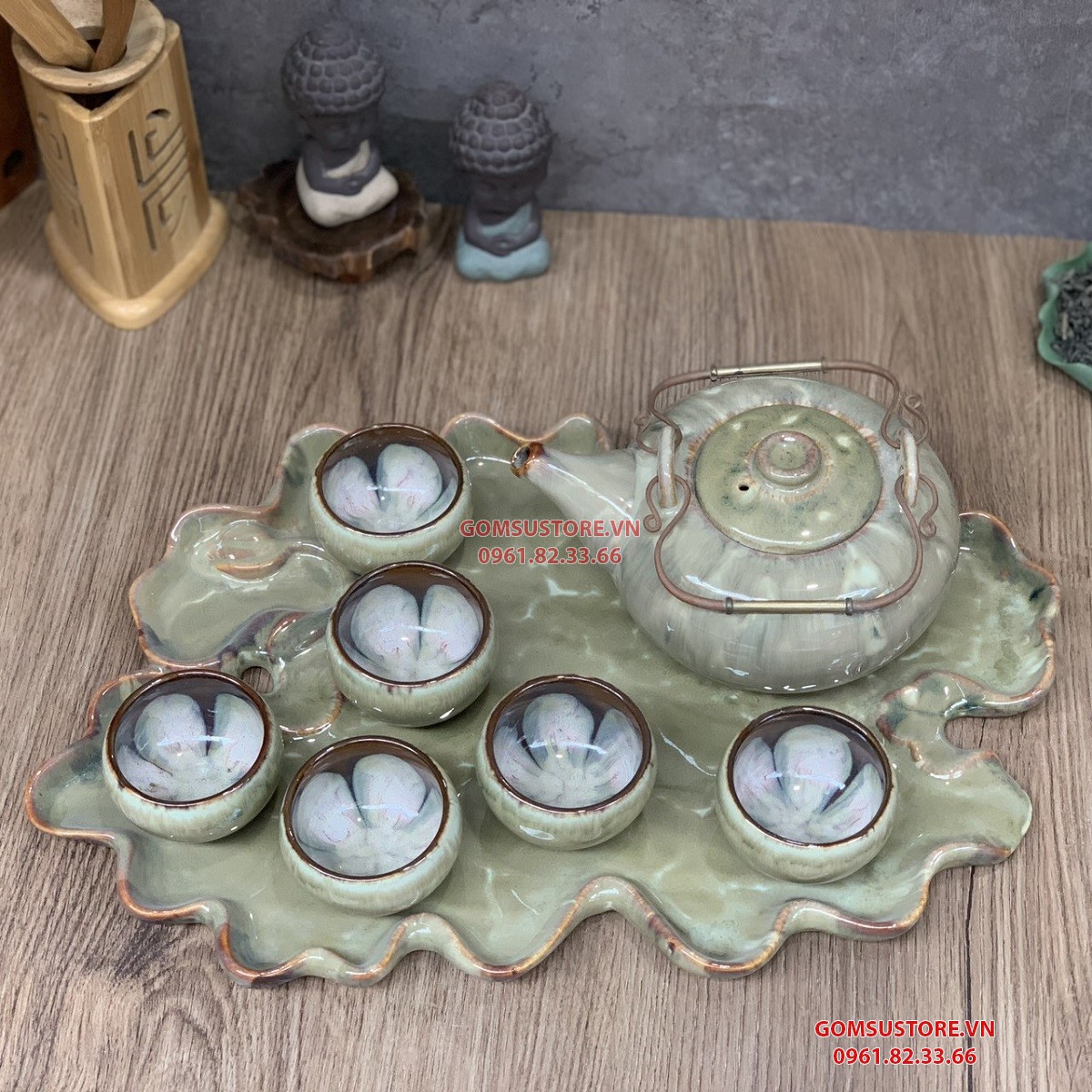 Bộ ấm chén bao gồm 1 ấm, 6 chén, 1 khay sen kê