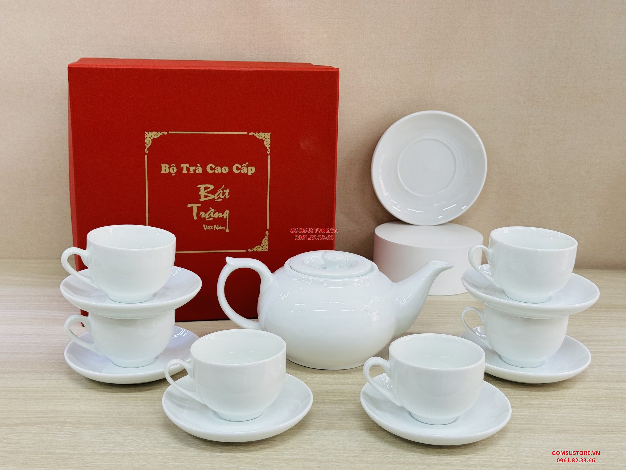 Ấm chén trắng Bát Tràng dáng Ck bẹt dung tích 450ml