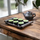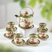 Sản phẩm bao gồm bộ ấm chén tinh xảo được chế tác từ đất tử sa thượng hạng, nổi bật với lớp chén lòng xanh đặc trưng tạo nên vẻ đẹp thanh tao và tinh tế.