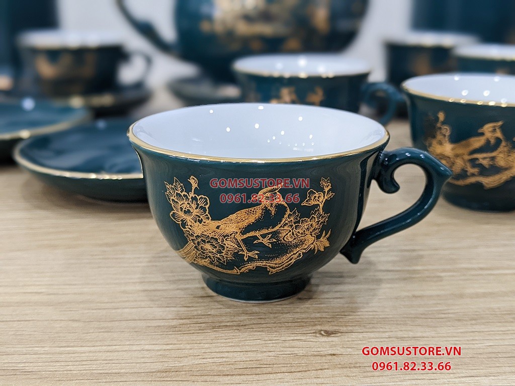 - Bộ ấm trà Bát Tràng men Xanh Mallard xanh cổ vịt Vinh hoa Phú Quý hoạ tiết làng quê bằng vàng 24K tinh xảo, đẹp đến từng chi tiết.