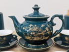Bộ ấm trà vinh hoa phú quý được hoàn thiện bởi sự phối hợp giữa sứ Bát Tràng cao cấp và chất men xanh cổ vịt bóng chất lượng cao kết hợp cùng họa tiết bằng vàng 18k vẽ cảnh hoa xuân và chim én và dòng chữ vinh hoa phú quý trên ấm trà mang đến ý nghĩa về sự may mắn, phú quý và tài lộc mỗi dịp xuân về.
