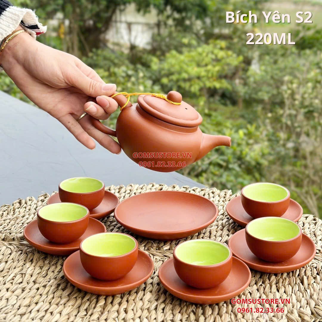Ấm chén đất đỏ, lòng xanh mẫu “Bích Yên” nổi bật với vẻ đẹp riêng, kết hợp hài hòa giữa chất liệu đặc trưng và thiết kế tinh tế.