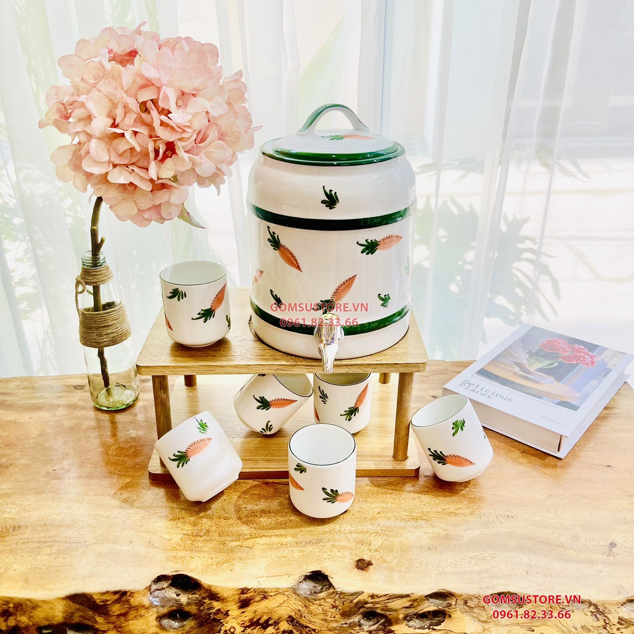 Bộ Bình nước sứ hoạ tiết vẽ tay dễ thương