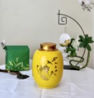 - Hũ đựng trà gốm được vẽ vàng tỉ mỉ chi tiết