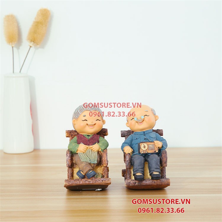 Bộ tượng ông bà anh mẫu mới nhất - Tượng trang trí nhà cửa ông bà 2 tượng Bập bênh 11*15cm