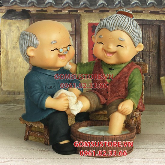 Bộ tượng khắc họa hình ảnh ông bà hết sức chân thực với những cử chỉ quan tâm mà ông bà dành cho nhau. Một tình yêu đẹp, bình dị nhưng xuất phát từ tấm lòng chân thành sẽ mang lại hạnh phúc tới đầu bạc răng nong. Chất liệu: nhựa cứng Dùng là quà cưới, trang trí phòng mới cưới, quà tân hôn, quà tặng Em cam kết giá rẻ nhất thị trường ạ