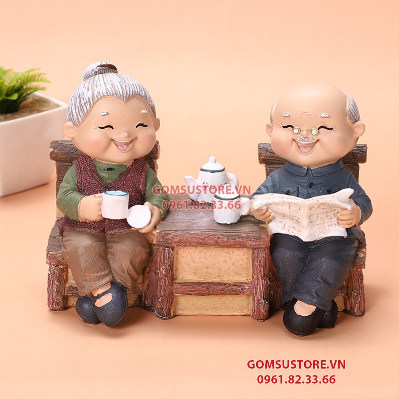 Bộ tượng khắc họa hình ảnh ông bà hết sức chân thực với những cử chỉ quan tâm mà ông bà dành cho nhau. Một tình yêu đẹp, bình dị nhưng xuất phát từ tấm lòng chân thành sẽ mang lại hạnh phúc tới đầu bạc răng nong. Chất liệu: nhựa cứng Dùng là quà cưới, trang trí phòng mới cưới, quà tân hôn, quà tặng Em cam kết giá rẻ nhất thị trường ạ