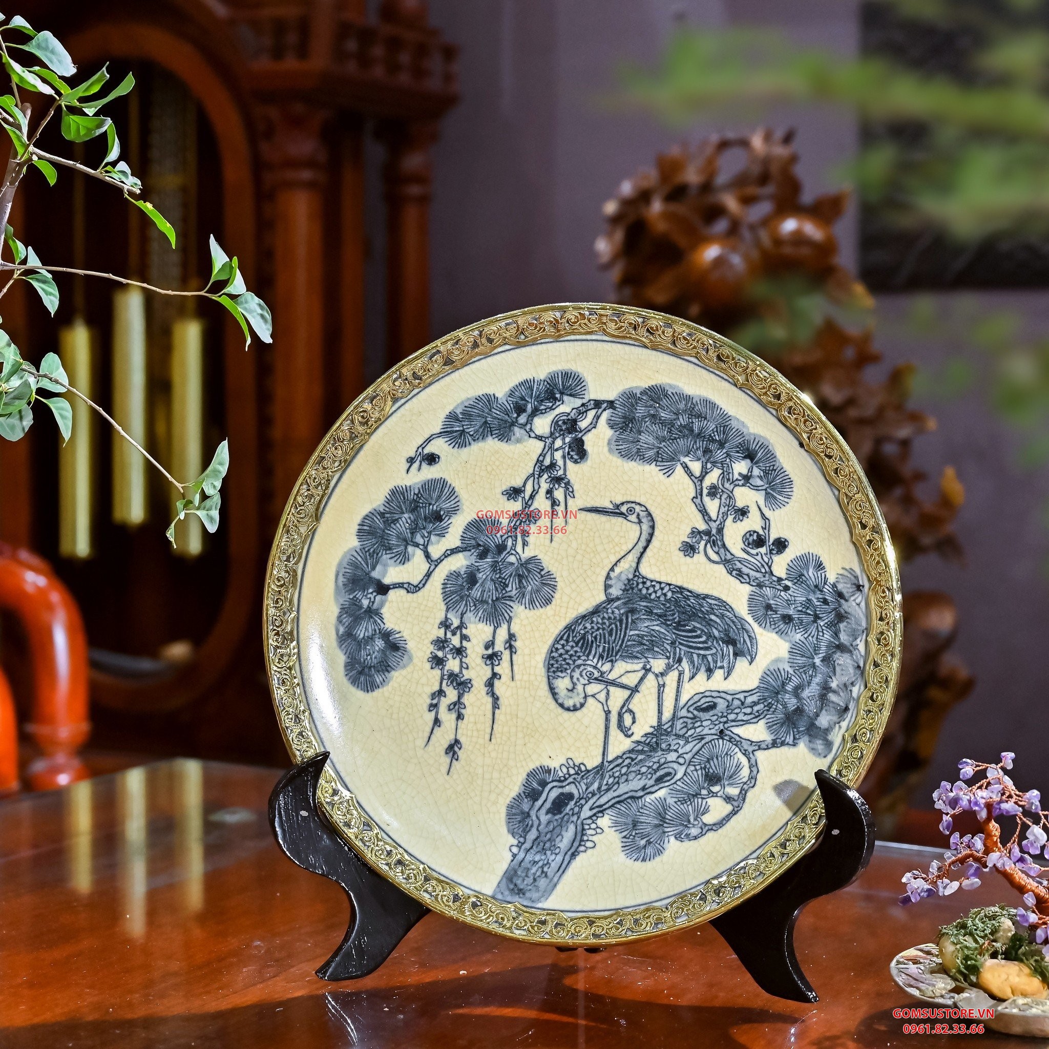 Đĩa cảnh men rạn bọc đồng gốm Bát Tràng cao cấp- Trang trí phòng khách/ Món quà sang trọng tinh tế tuyển chọn
