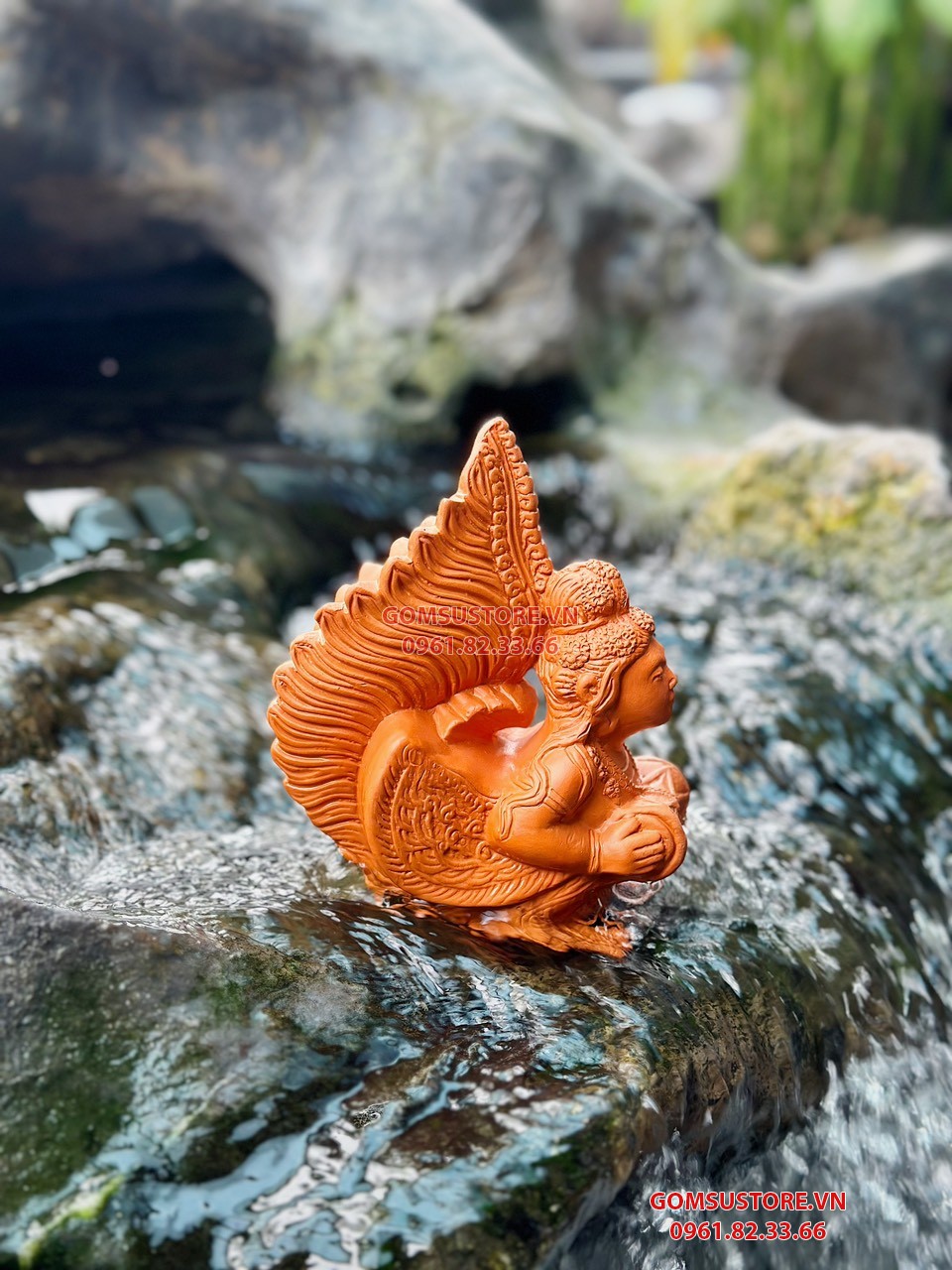 Hiện vật trưng bày tại Bảo tàng Lịch sử quốc gia Tượng đầu người mình chim đánh trống (Kinnari/ca thần), thể hiện một nhân vật thần linh với nửa trên hình người, hai tay bưng chiếc trống cơm đeo ngang trước ngực, nửa dưới hình chim, có cánh, có móng và đuôi dài cong nối với đỉnh đầu. Tượng tạc với khuôn mặt trầm tư, dịu dàng, đôi lông mày thanh, mũi thẳng cao thể hiện khá rõ nét nhân chủng Ấn. Kinnari thường được trang trí trong các ngôi chùa Việt Nam và điêu khắc đá Champa.