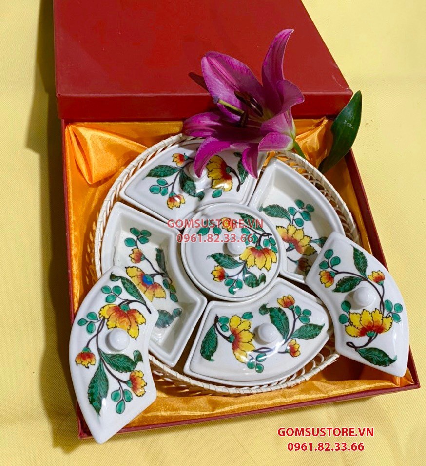 Khay đựng mứt 5 ngăn gốm sứ Bát Tràng