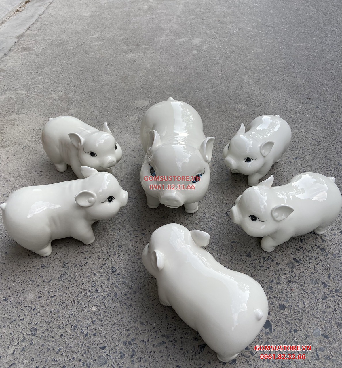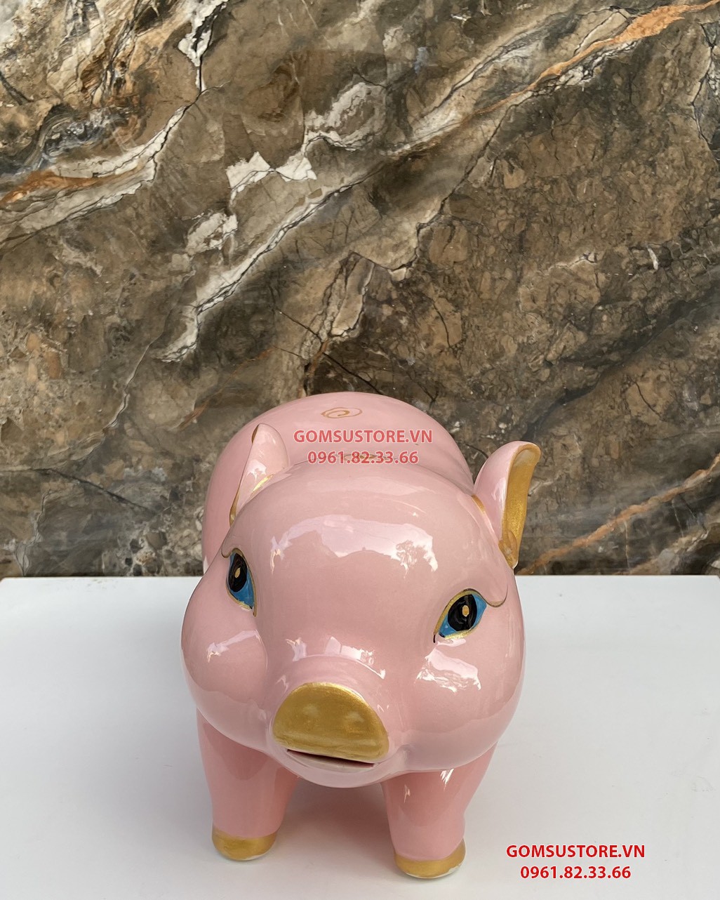 Heo sứ tiết kiệm lợn đất tai vàng tài lộc Bát Tràng Size nhỏ 15 x 12 x 24cm