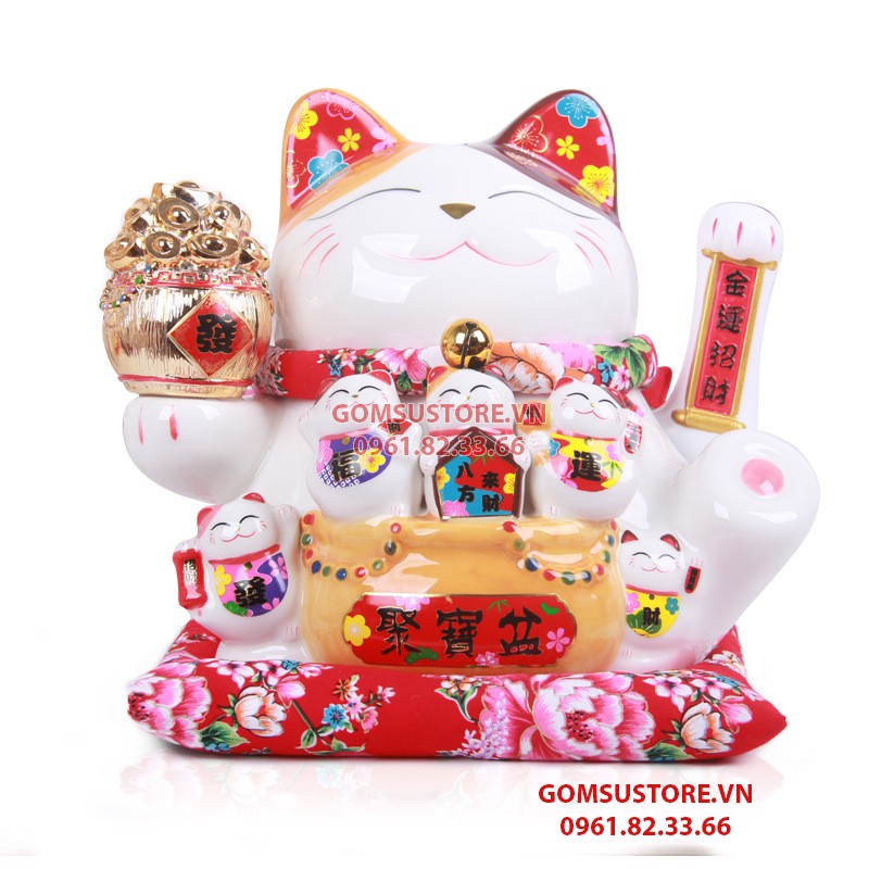 5 mèo con tượng trưng cho Phúc,Lộc, Thọ, Tài , Đức Dưới mèo có túi tụ tiền mang lại may mắn, tài lộc cho chủ nhân.