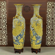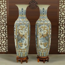 Lọ Độc Bình, Lọ Bảo Bình Gốm Sứ Bát Tràng Men Rạn Họa Tiết Đắp Nổi Công Đào Vẽ Vàng Cao 80cm