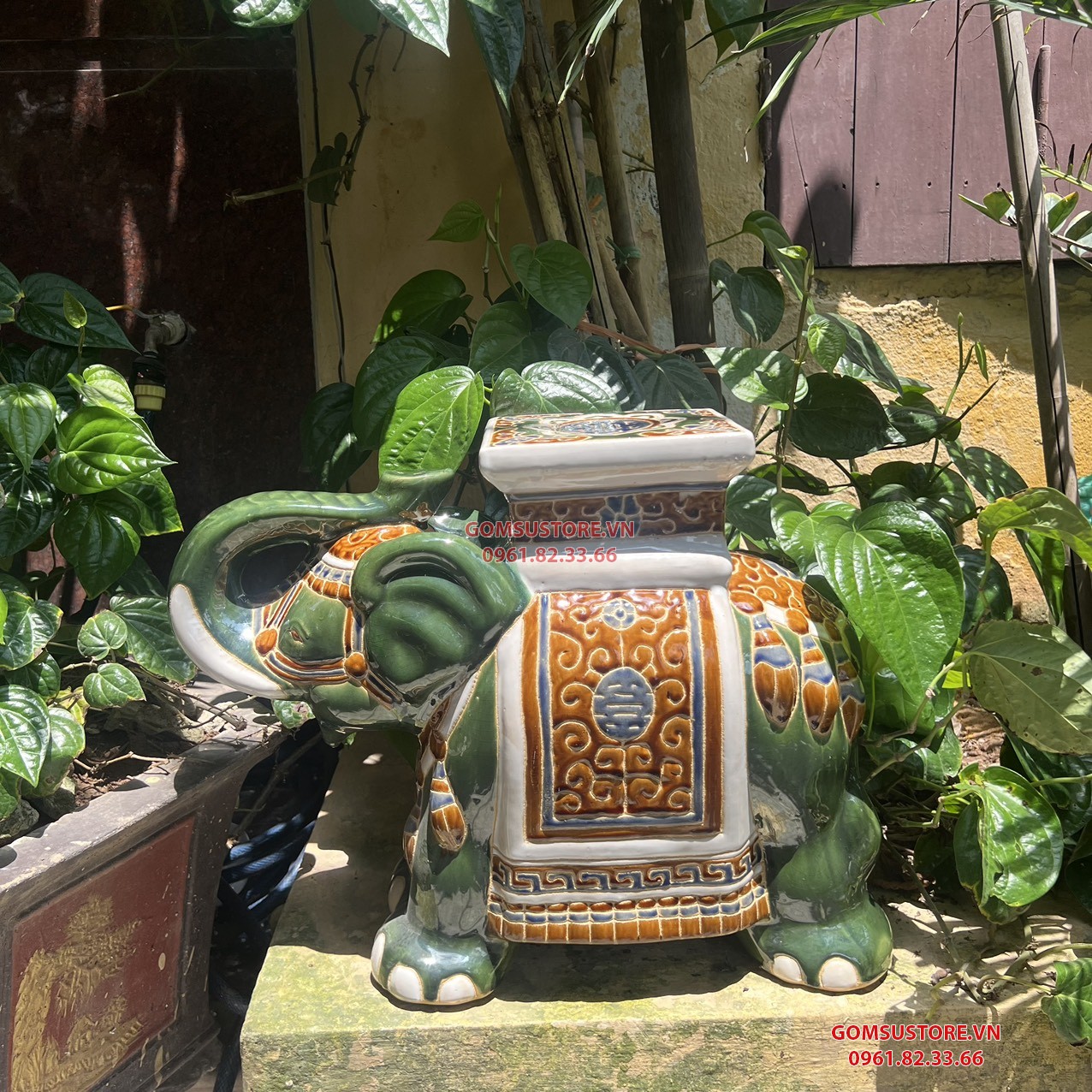 Đôn voi gốm biên hòa màu xanh cỡ lớn dùng để trưng bày, hoặc dùng để kê chậu cây rất đẹp. Ngoài làm vật trang trí tạo điểm nhấn cho không gian đôn voi gốm còn làm vật mang ý nghĩa phong thủy cho gia đình.